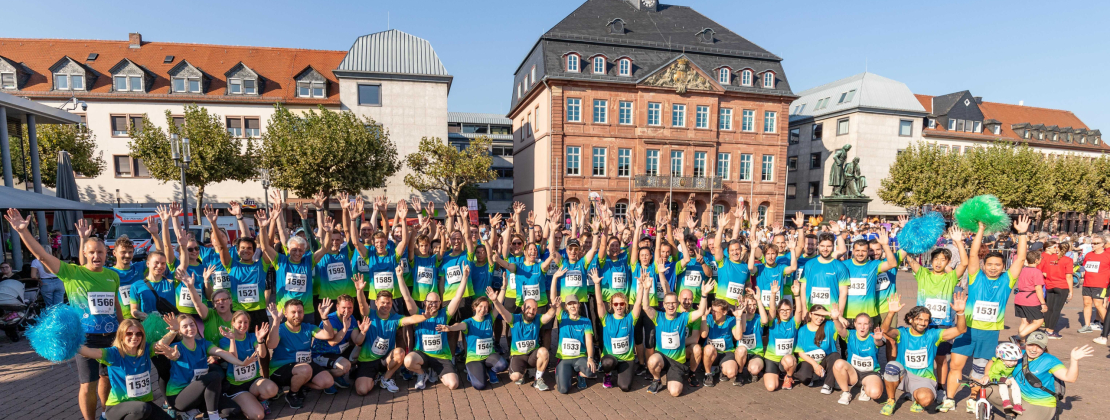 Nach einem kurzen, aber energiegeladenen Aufwärmprogramm und dem obligatorischen Teamfoto fiel pünktlich um 17:00 Uhr der Startschuss für den sechs Kilometer langen Lauf durch die Hanauer Innenstadt.