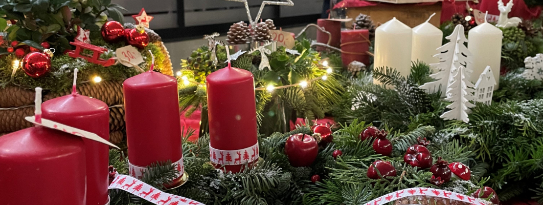 Traditionsgemäß lädt Umicore am Freitag vor dem ersten Advent alle Mitarbeitenden in Hanau zu einem gemeinsamen Mittagessen beim hauseigenen Weihnachtsmarkt ein. In der weihnachtlichen Atmosphäre konnten sich die Mitarbeiter*innen am Suppenbuffet bedienen und anschließend durch das bunte und vielfältige Angebot der 16 Verkaufsstände stöbern. Ob selbst gesteckte Adventskränze, personalisierte Weihnachtskugeln, Honigspezialitäten, Kosmetik oder Leckereien wie frische Waffeln, Kaiserschmarrn und alkoholfreie Cocktails, hier wurden alle fündig.